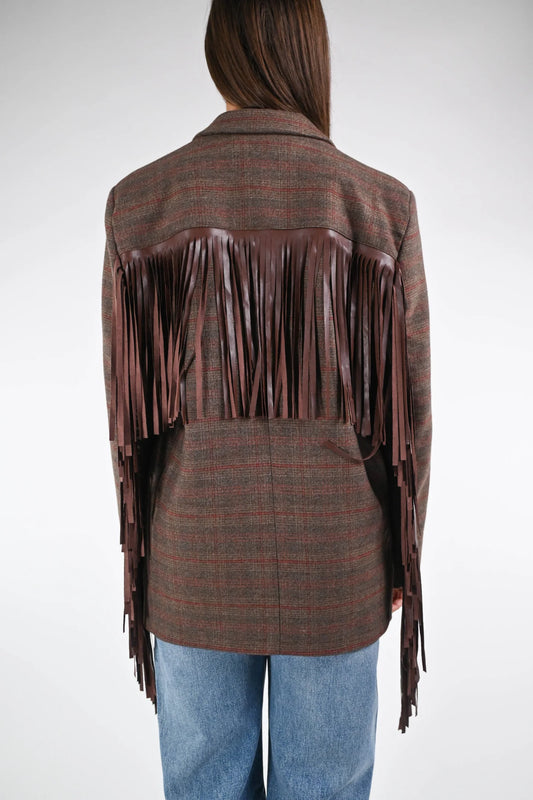 Giacca quadrettata con frangia manica VICOLO art. TF1121 colore marrone