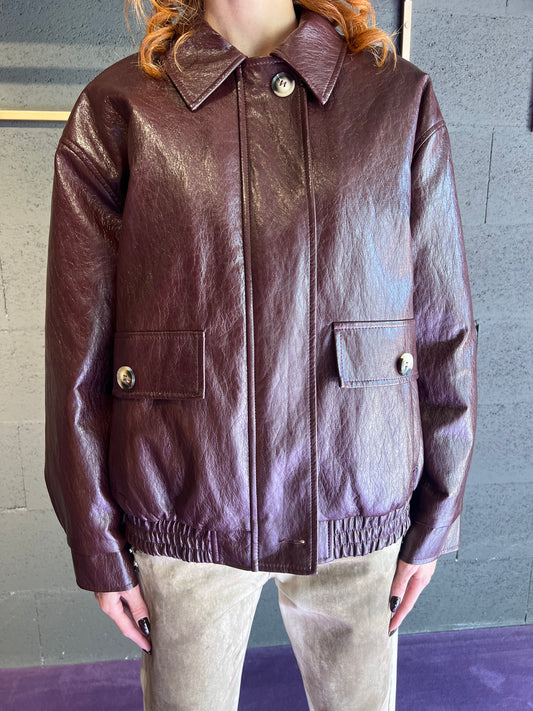 Bomber in vinile imbottito con tascone MOTEL art. 225165 colore nero e bordeaux