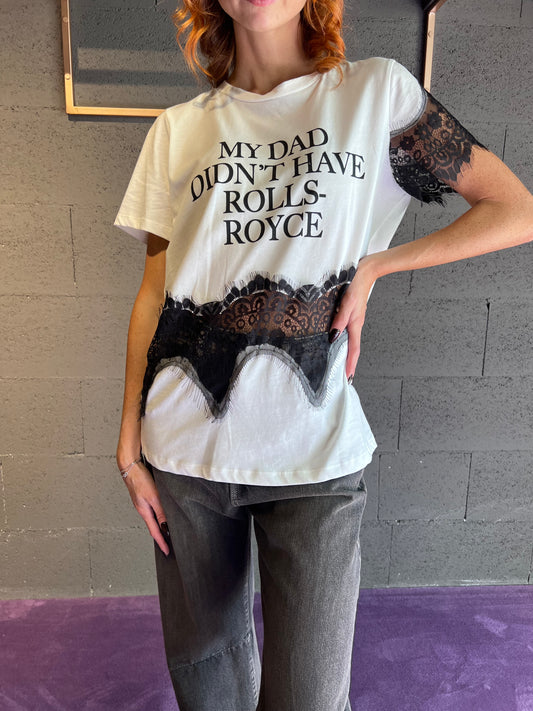 Tshirt con scritta e dettaglio pizzo TENSIONE IN art. 37721 colore panna e grigio