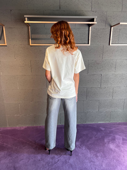 Tshirt over con scritta "rock club " VICOLO art. RF0296 colore panna