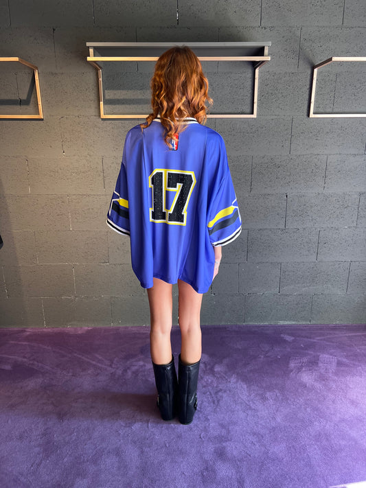Tshirt over con scritta e numero con strass THE LABO art. DRAMA colore viola