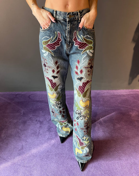 Jeans con ricami e toppe KONTATTO art. TU103N colore jeans