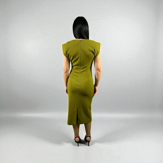 Abito midi con spallone e spilla oro HAVEONE art. AFS-P014 colore olio e nero