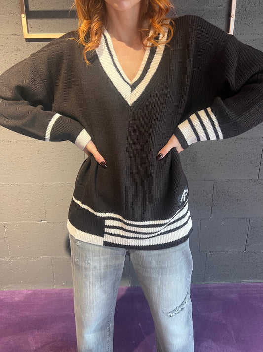 Maxi maglia college scollo a V HINNOMINATE art. HMABW02081 colore marrone