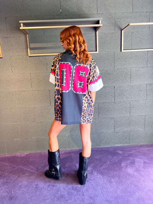 Maxi tshirt maculata con numero e scritta con applicazioni sul numero THE LABO art. MADAME2 colore maculato