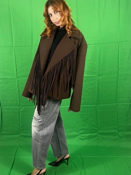 Cappotto over con frange VIVIENNE art. VLD3553 colore bordeaux, marrone