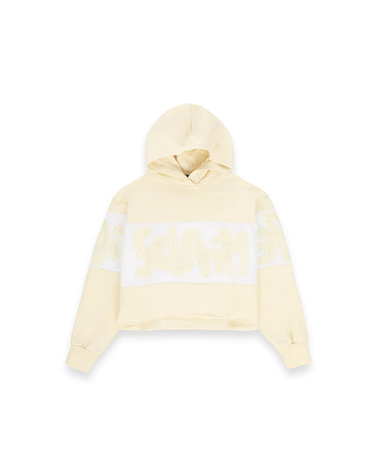 Felpa con cappuccio crop con scritta glitter logo DISCLAIMER art. 25IDS55312 colore nero e panna