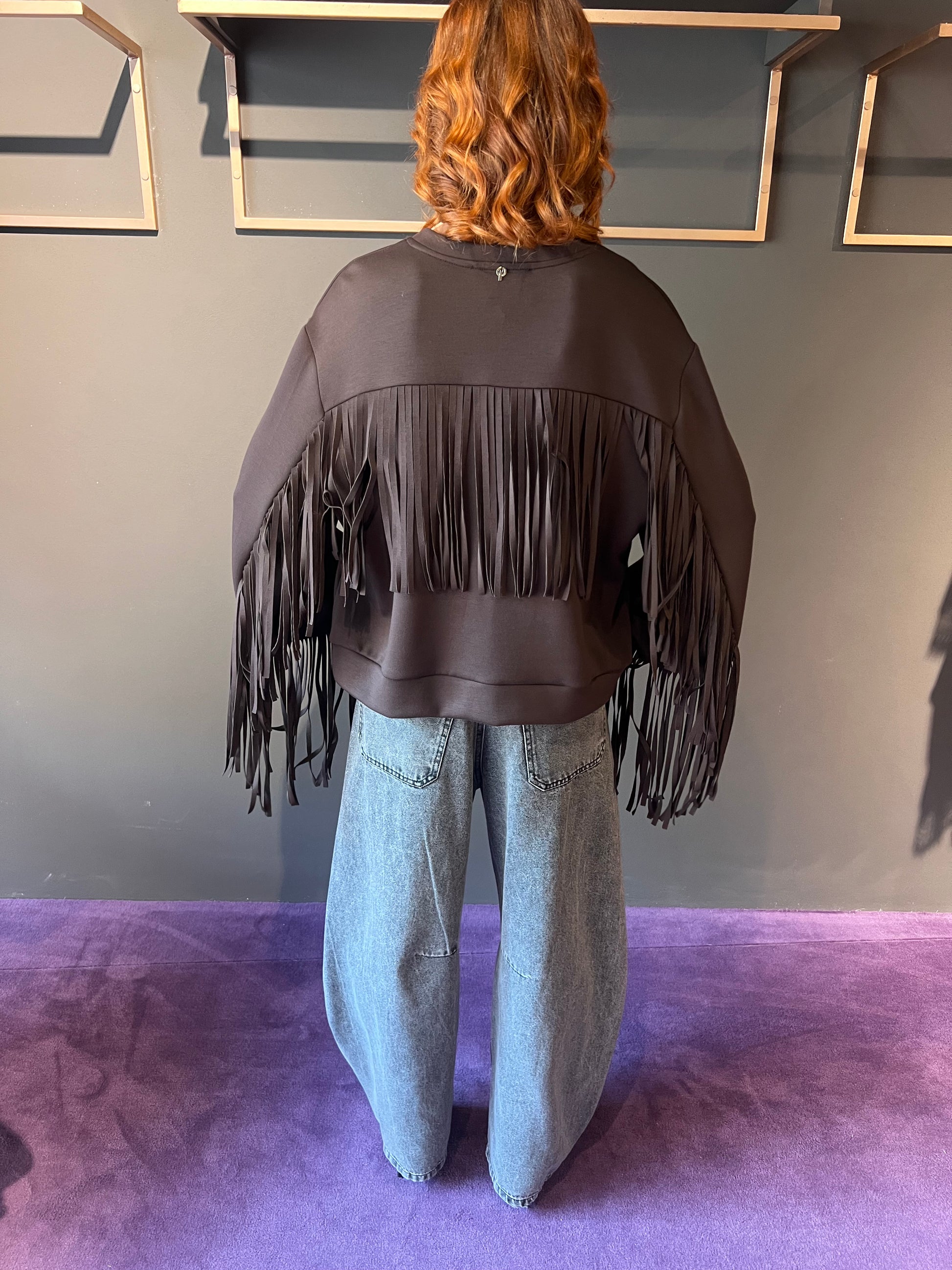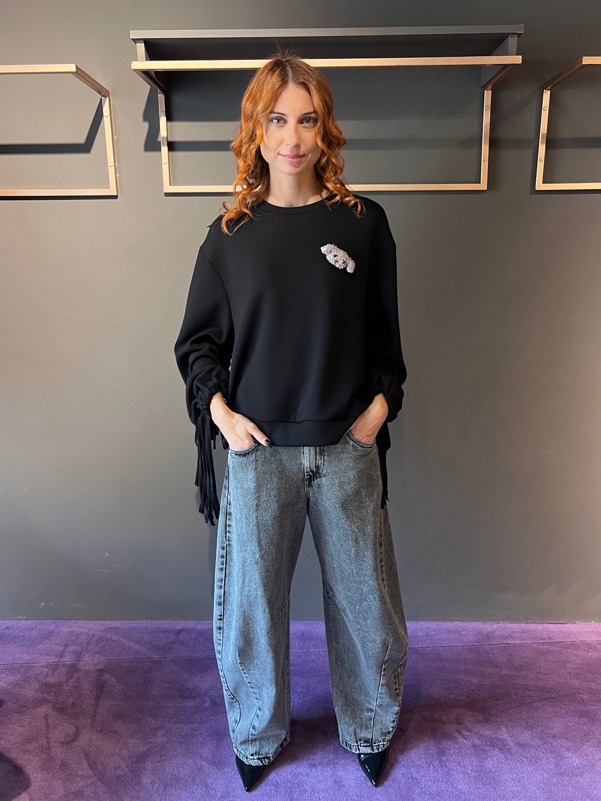 Felpa con frange e spilla peluche PHILIA LOFT art. D01E0631 colore marrone e nero