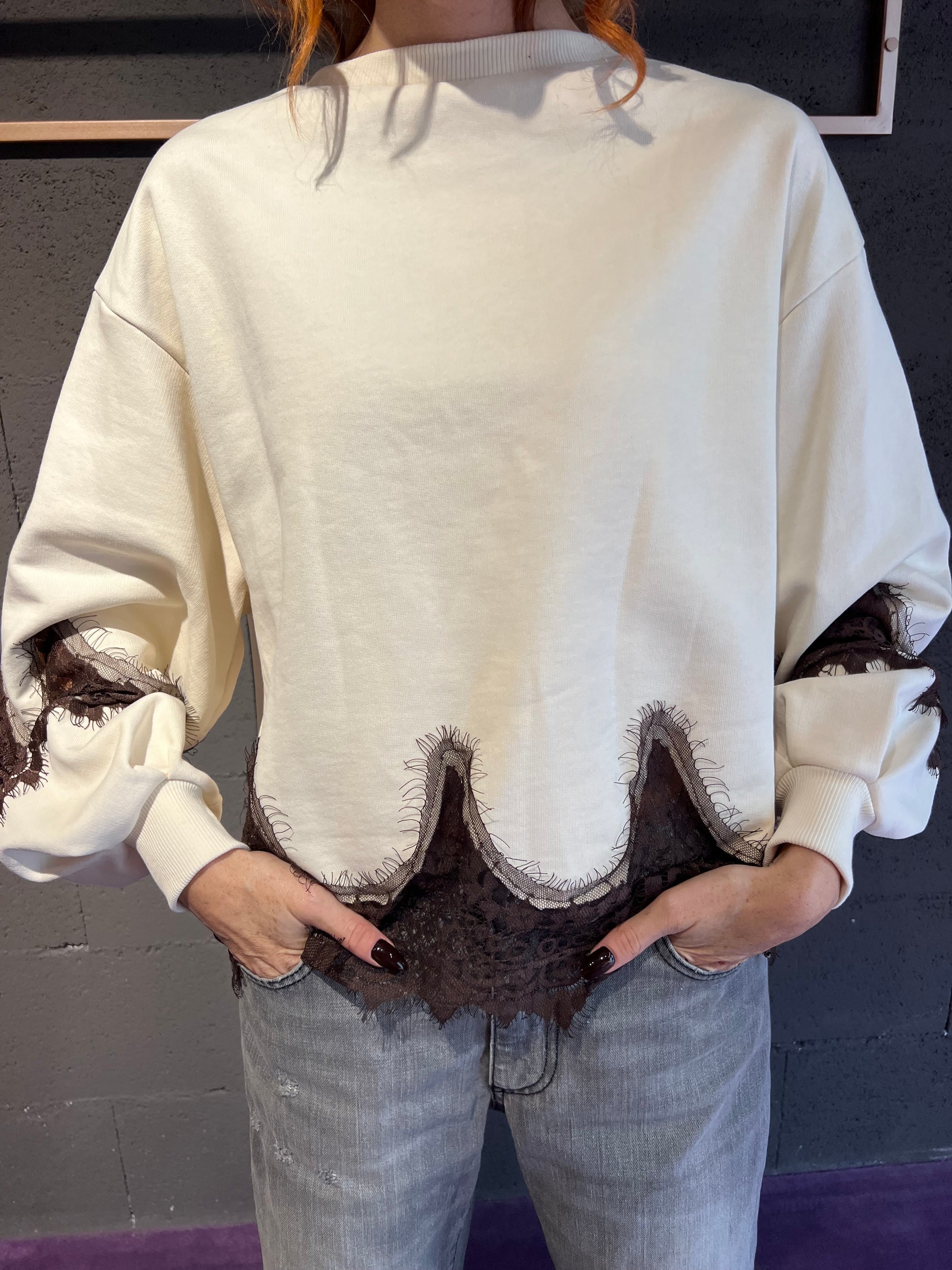 Felpa over con pizzo TENSIONE IN art. 37683 colore panna e nero