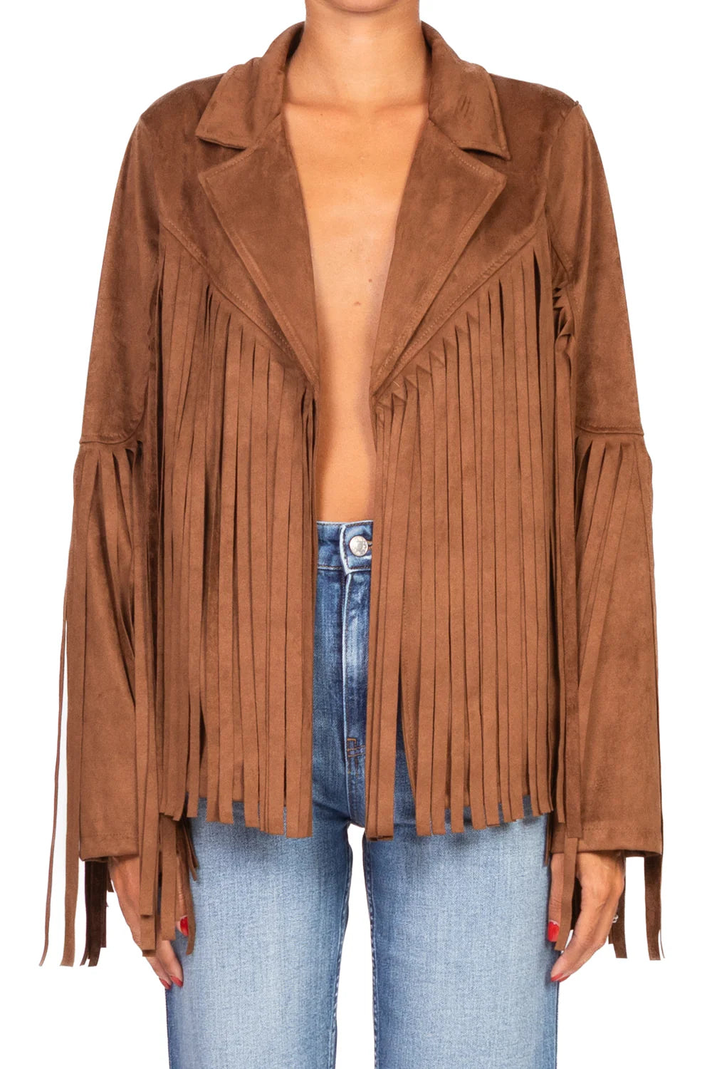 Giacca effetto renna con frange HAVEONE art. JFW-P058 colore cammello e cioccolato
