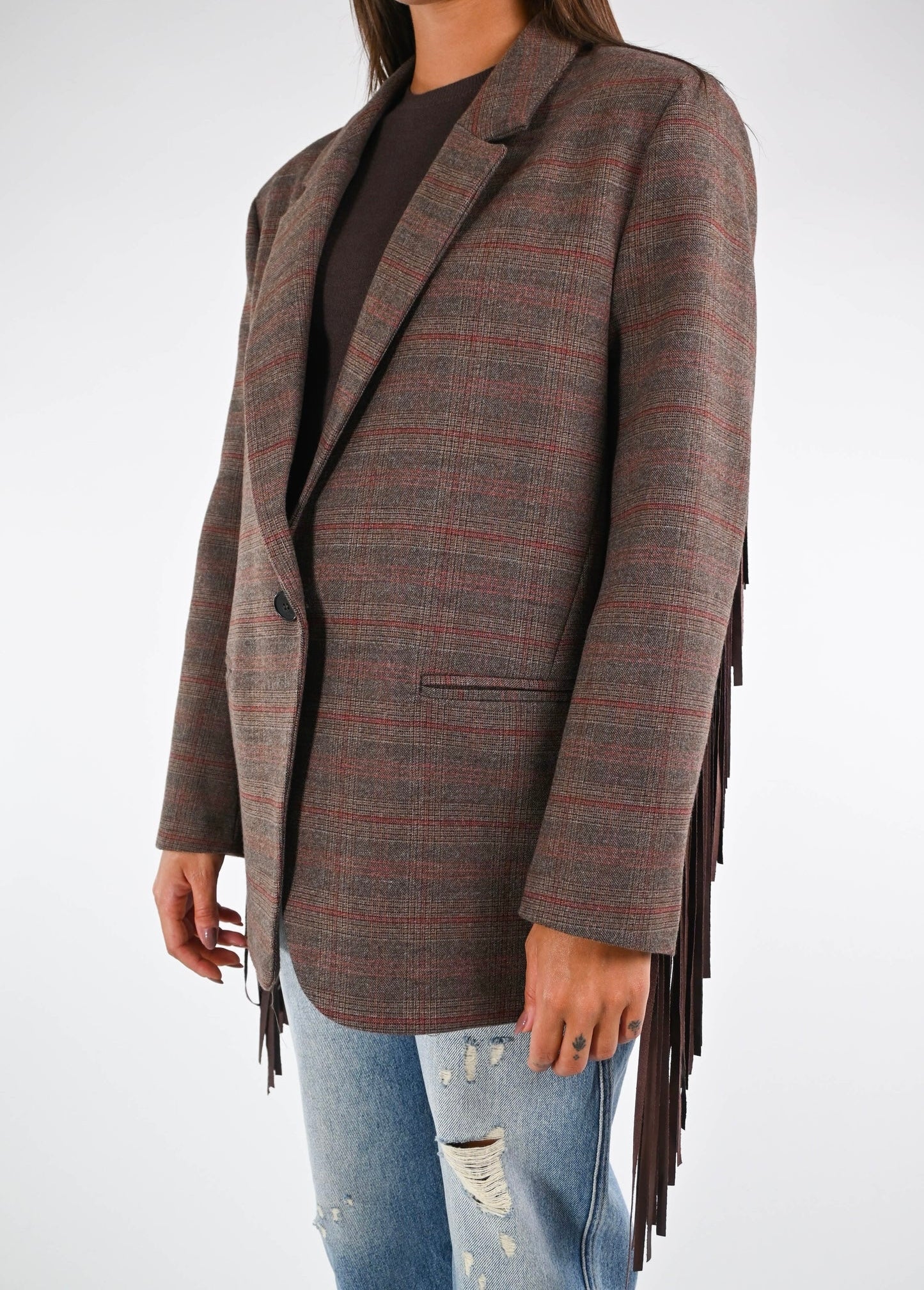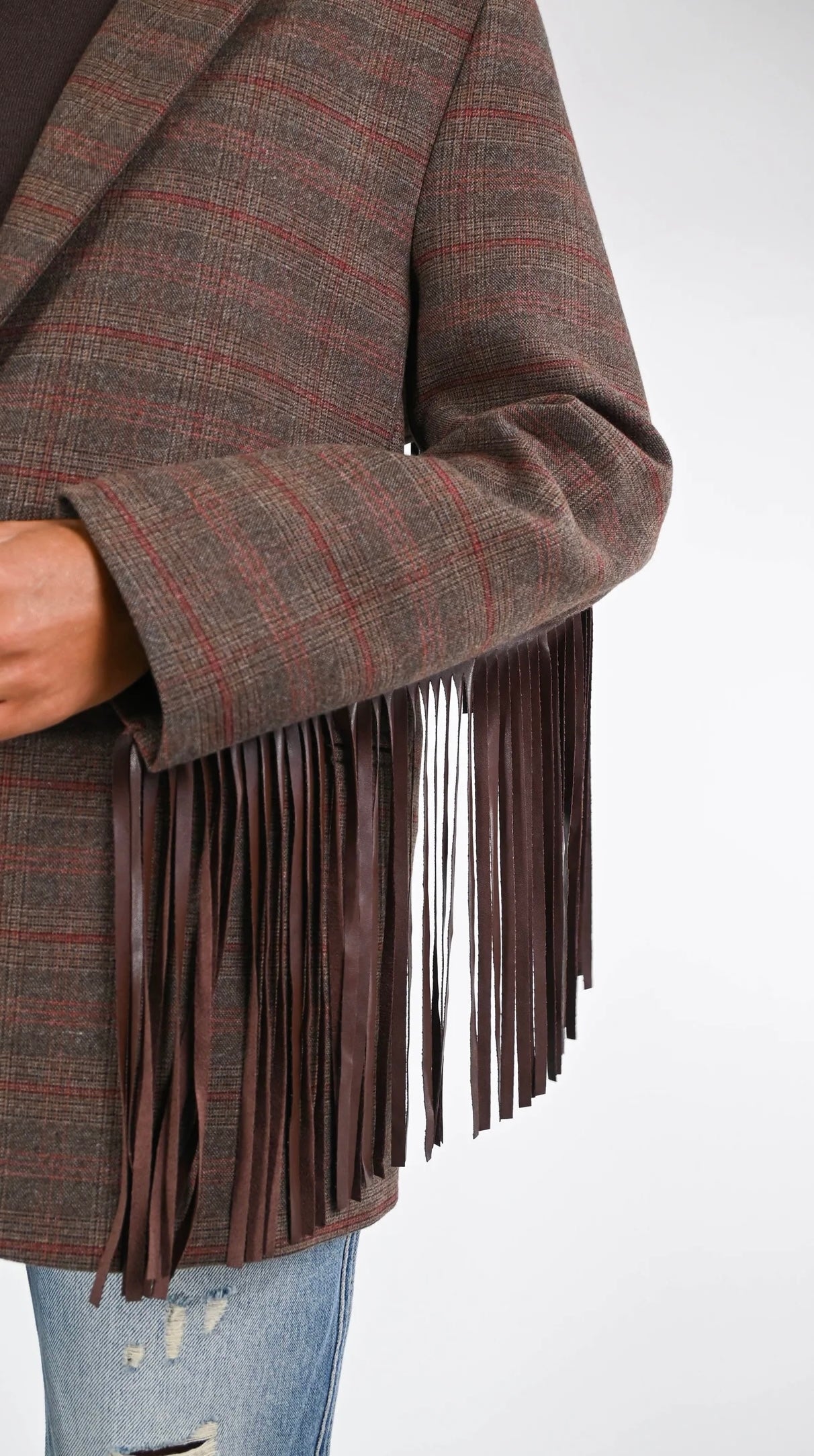 Giacca quadrettata con frangia manica VICOLO art. TF1121 colore marrone