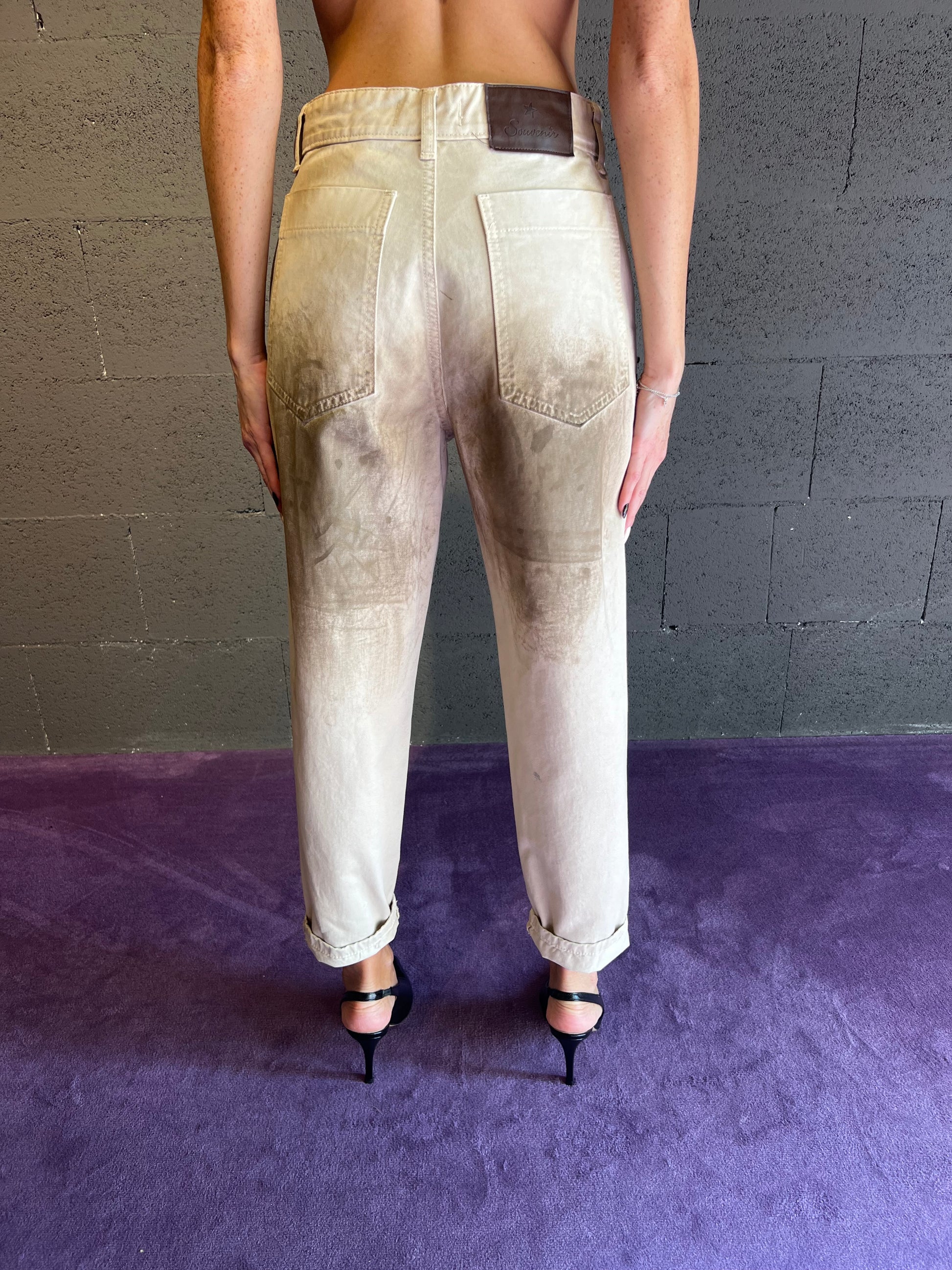 Jeans spalmato con borchie SOUVENIR art. S38M0809 colore beige