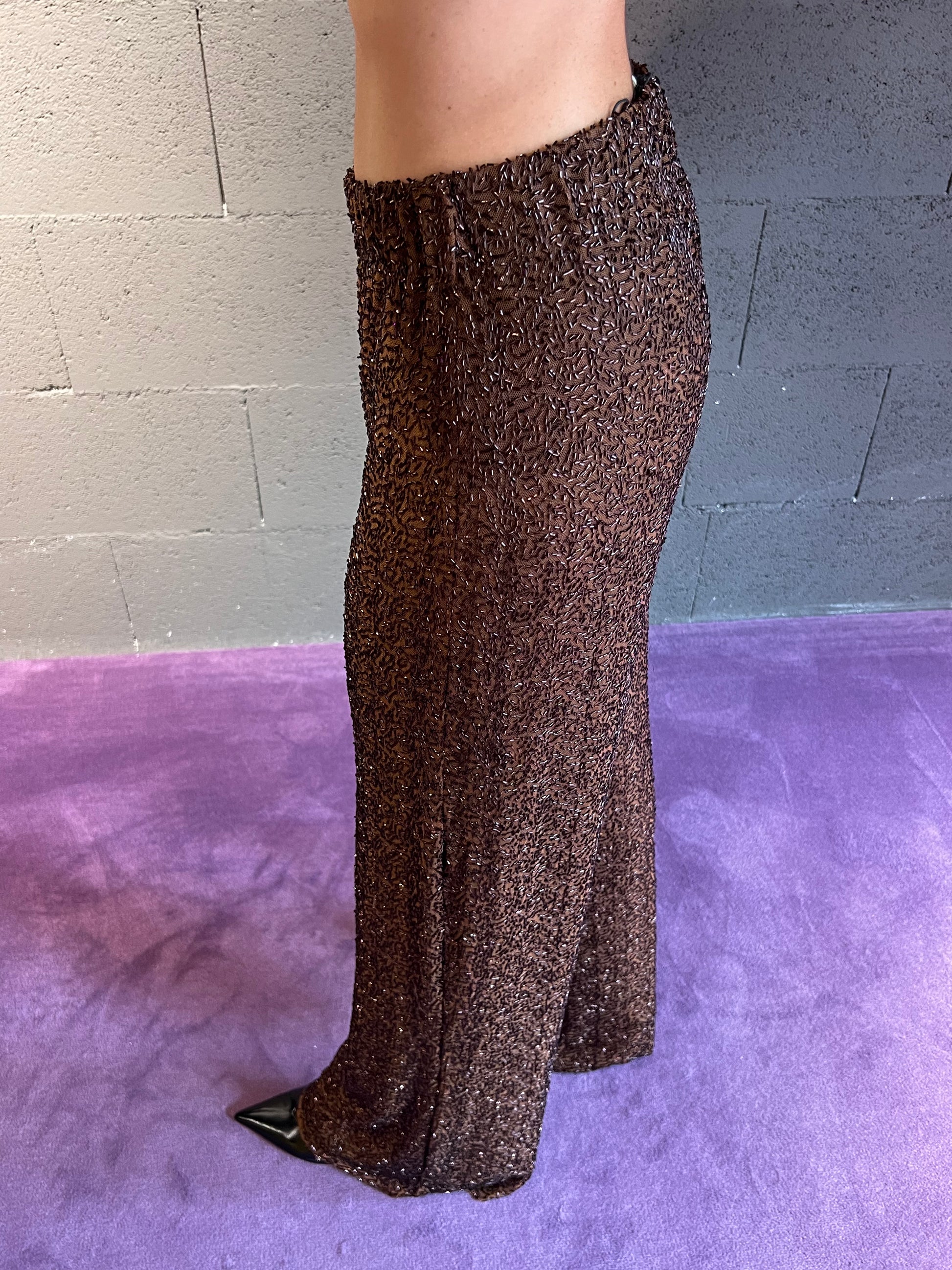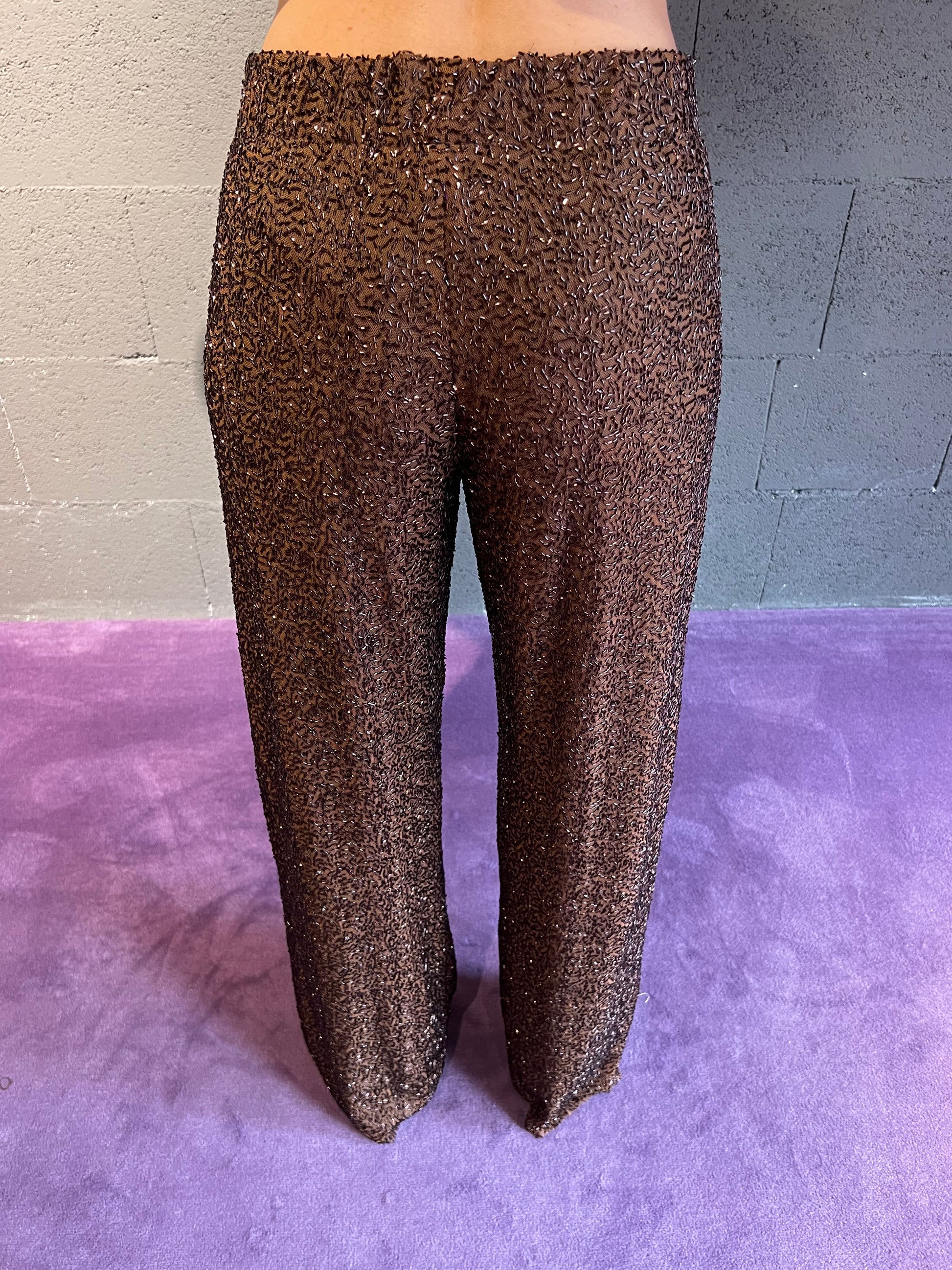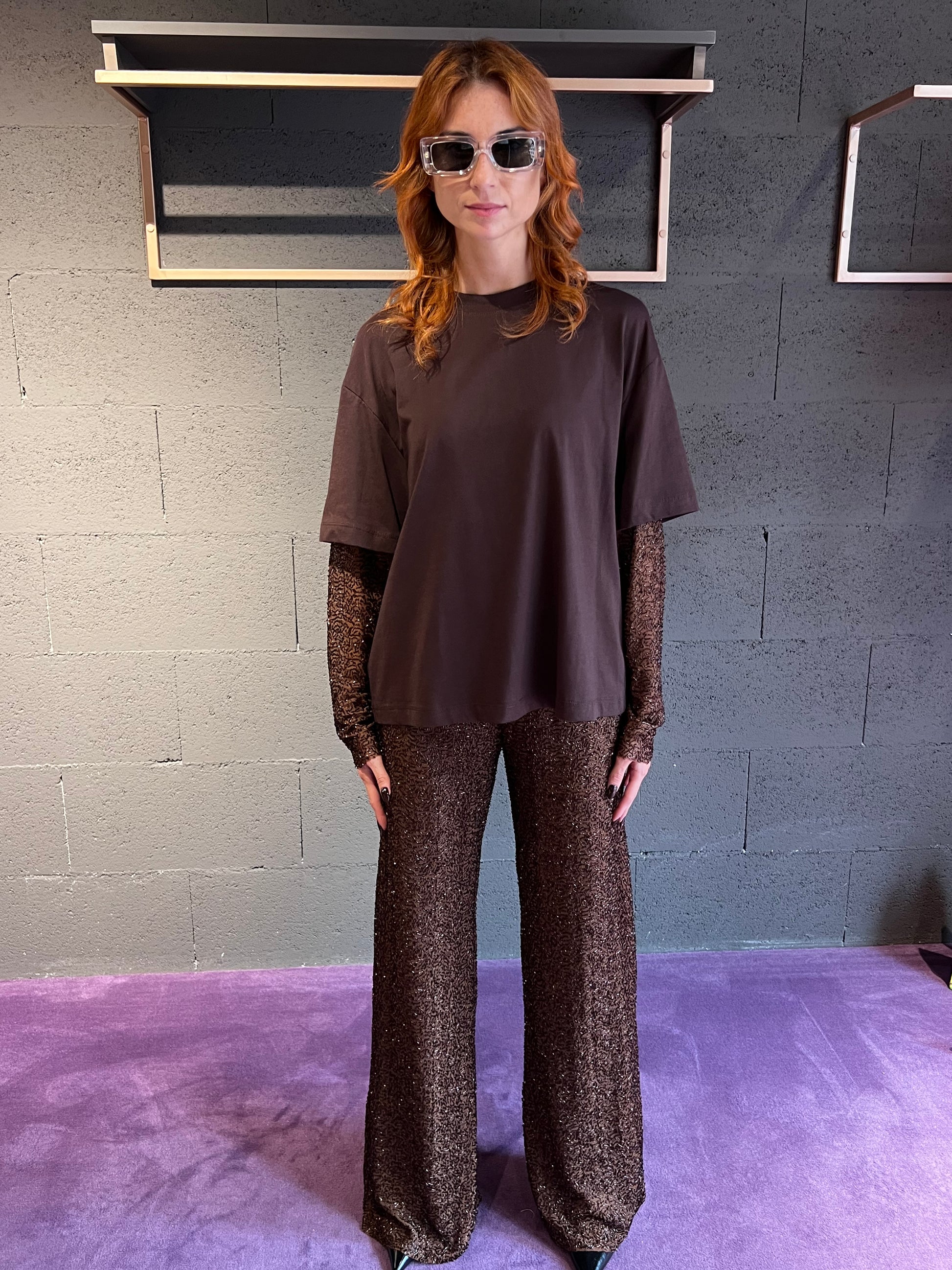 Pantapalazzo con pailettes TENSIONE IN art. FW250005 colore marrone