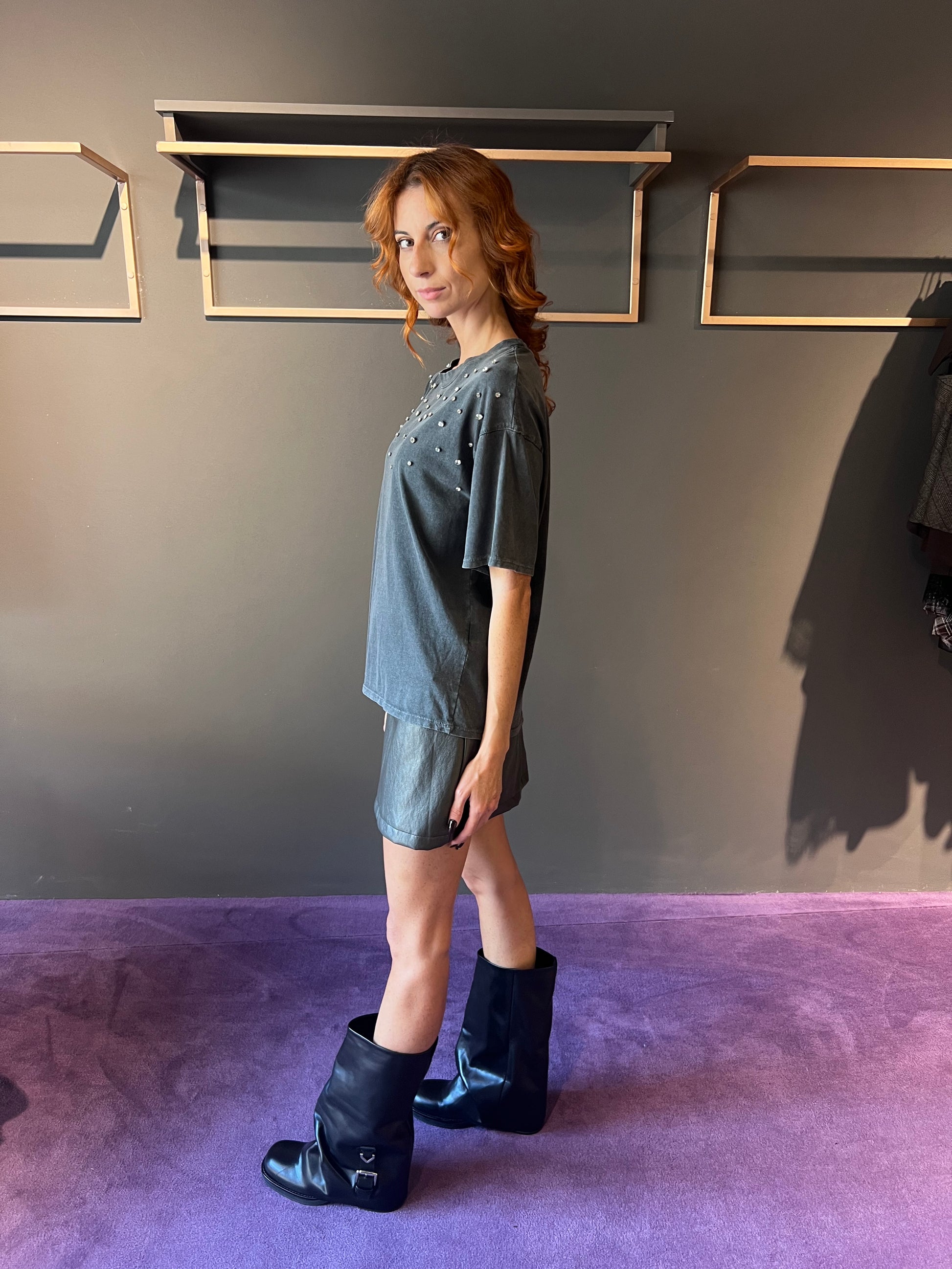Tshirt over con pietre sparse HAVEONE art. TMA-P037 colore grigio